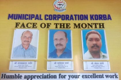 कोरबा नगर निगम के ’’फेस आफ द मंथ’’ चुने गए सत्य प्रकाश, परमेश्वर व जोहन, उत्कृष्ट कार्यो हेतु निगम के छोटे कर्मचारी हो रहे सम्मानित