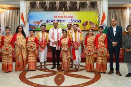 लोकभवन में आयोजित स्थापना दिवस पर विश्वविद्यालय के विद्यार्थियों ने दी बिहू नृत्य की प्रस्तुति