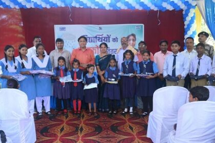 एनटीपीसी लारा द्वारा सरकारी स्कूल महलोई में स्कूल के जूते, पानी की बोतलें और प्रतियोगी परीक्षा की पुस्तकें वितरण