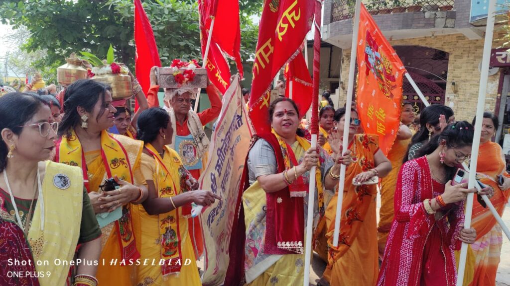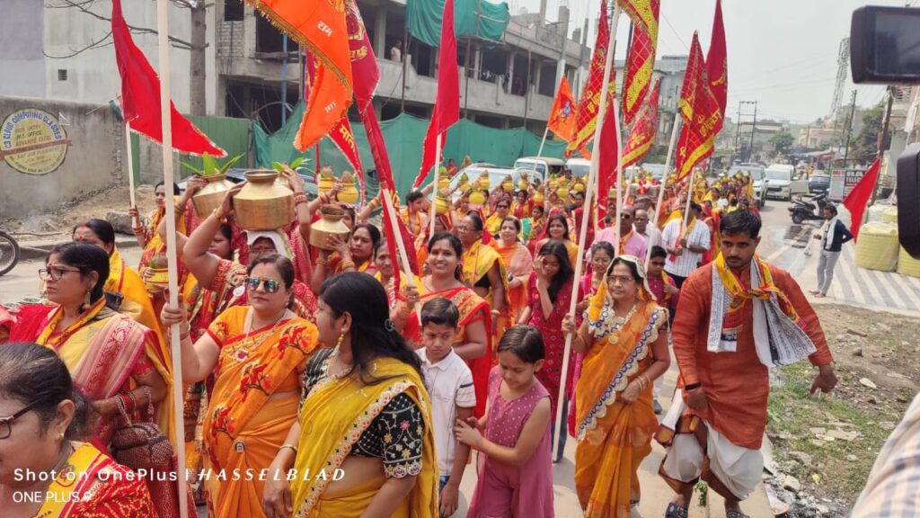 कोरबा, 17 मार्च (वेदांत समाचार)। पंडित रविशंकर शुक्ल नगर कोरबा में सोमवार को भव्य कलशयात्रा के साथ संगीतमय श्री मद भागवत कथा ज्ञान यज्ञ सप्ताह का आगाज हो गया है। सोमवार को मंदिर प्रांगण से निगम (साडा)कॉलोनी स्थित शिव मंदिर प्रांगण तक गाजे बाजे के साथ भव्य शोभायात्रा यात्रा निकाली गई। जिसमें कपिलेश्वरनाथ महिला मंडल की पदाधिकारी सदस्यों के अलावा नगर की सभी भागवत कथा प्रेमी शामिल हुए। पारंपरिक परिधान में कलशधारी माताओं बहनों का समूह देखते ही बन रहा था। शोभायात्रा की हनुमान (वेषधारी )अगुवाई कर रहे थे। ध्वज लहराते नाचते गाते ,जय श्री राम के जयघोष लगाते माताओं बहनों का समूह कथा स्थल प्रांगण पहुँचा।
