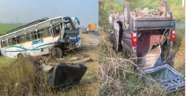 ग्वालियर,21 फरवरी । मध्य प्रदेश के भिंड–ग्वालियर NH-719 पर तेज रफ्तार बस ने यात्रियों से भरी ईको कार को जोरदार टक्कर मार दी, जिसमें पांच लोगों की मौके पर ही मौत हो गई और सात लोग गंभीर रूप से घायल हो गए हैं। घायलों में से दो की हालत गंभीर बताई जा रही है, जिन्हें ग्वालियर रेफर किया गया है। जानकारी के अनुसार, बस भिंड में बारात छोड़कर ग्वालियर जा रही थी, तभी जिले के छीमका के पास यह हादसा हुआ। सूचना मिलने पर गोहद चौराहा पुलिस तुरंत पहुंची और राहत एवं बचाव कार्य शुरू किया।