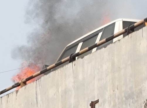 वहीं आग बुझाने के लिए दमकल विभाग को भी सूचना दी गई, जिसके बाद दमकल की टीम मौके पर रवाना हुई। आग की लपटें काफी तेज होने के कारण वाहन को भारी नुकसान होने की आशंका जताई जा रही है।