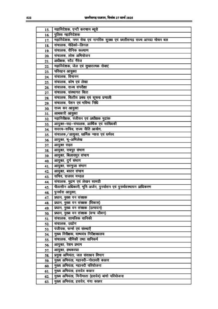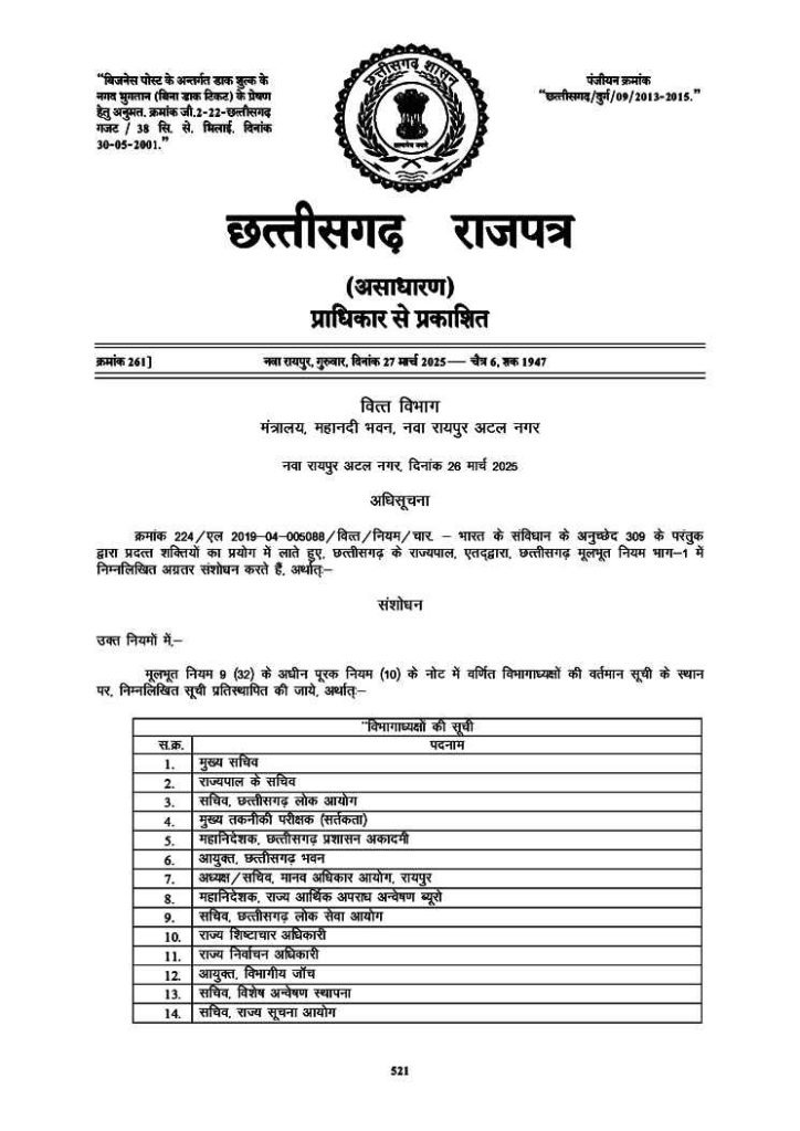 रायपुर,10अप्रैल 2025 (वेदांत समाचार) । राज्य सरकार ने विभिन्न शासकीय विभागों के प्रमुखों को लेकर नई अधिसूचना जारी की है। इस अधिसूचना में कई महत्वपूर्ण बदलाव किए गए हैं, जिनमें सबसे बड़ा फेरबदल आर्थिक अपराध अन्वेषण ब्यूरो (EOW) को लेकर हुआ है।
