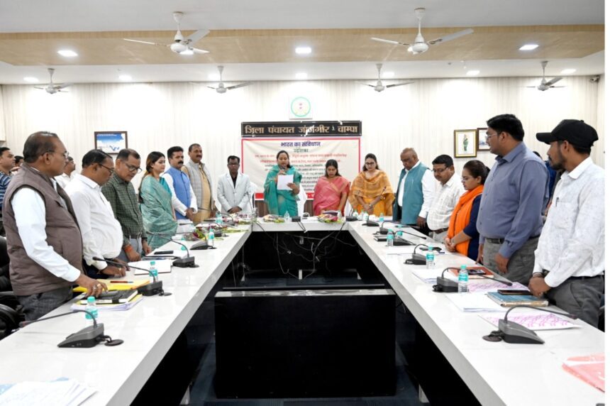 जांजगीर-चांपा 26 नवम्बर 2025। जिले में 26 नवंबर संविधान दिवस के अवसर पर जिला स्तरीय कार्यक्रम जिला पंचायत के सभाकक्ष में आयोजित किया गया। जिला पंचायत अध्यक्ष इंजी सत्यलता आनंद मिरी ने कार्यक्रम में उद्देशिका का वाचन किया और सभी को संविधान दिवस की शुभकामनाएं दी। इस दौरान जिला से लेकर जनपद पंचायत, नगर पंचायत, नगर पालिका ग्राम पंचायतों में संविधान दिवस मनाया गया। इसके साथ ही क्विज़ गतिविधियाँ भी आयोजित की गई।