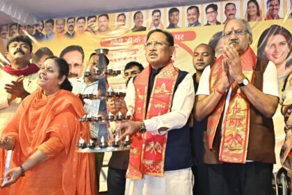 मुख्यमंत्री श्री साय खारुन मईया समरसता भव्य महाआरती में हुए शामिल : महाआरती में मंत्रोच्चार से गूंजा खारुन नदी का महादेव घाट
