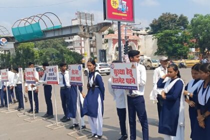 0 रायपुर के शास्त्री चौक पर यातायात जागरूकता अभियान के तहत विद्यार्थियों…
