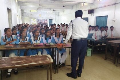 रायगढ़ यातायात पुलिस ने कांटाहरदी स्कूल के बच्चों को दी ट्रैफिक नियमों की जानकारी
