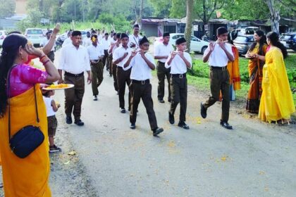 KORBA NEWS : शताब्दी वर्ष के परिप्रेक्ष्य में आरएसएस का बालकोनगर में निकला पथ संचलन