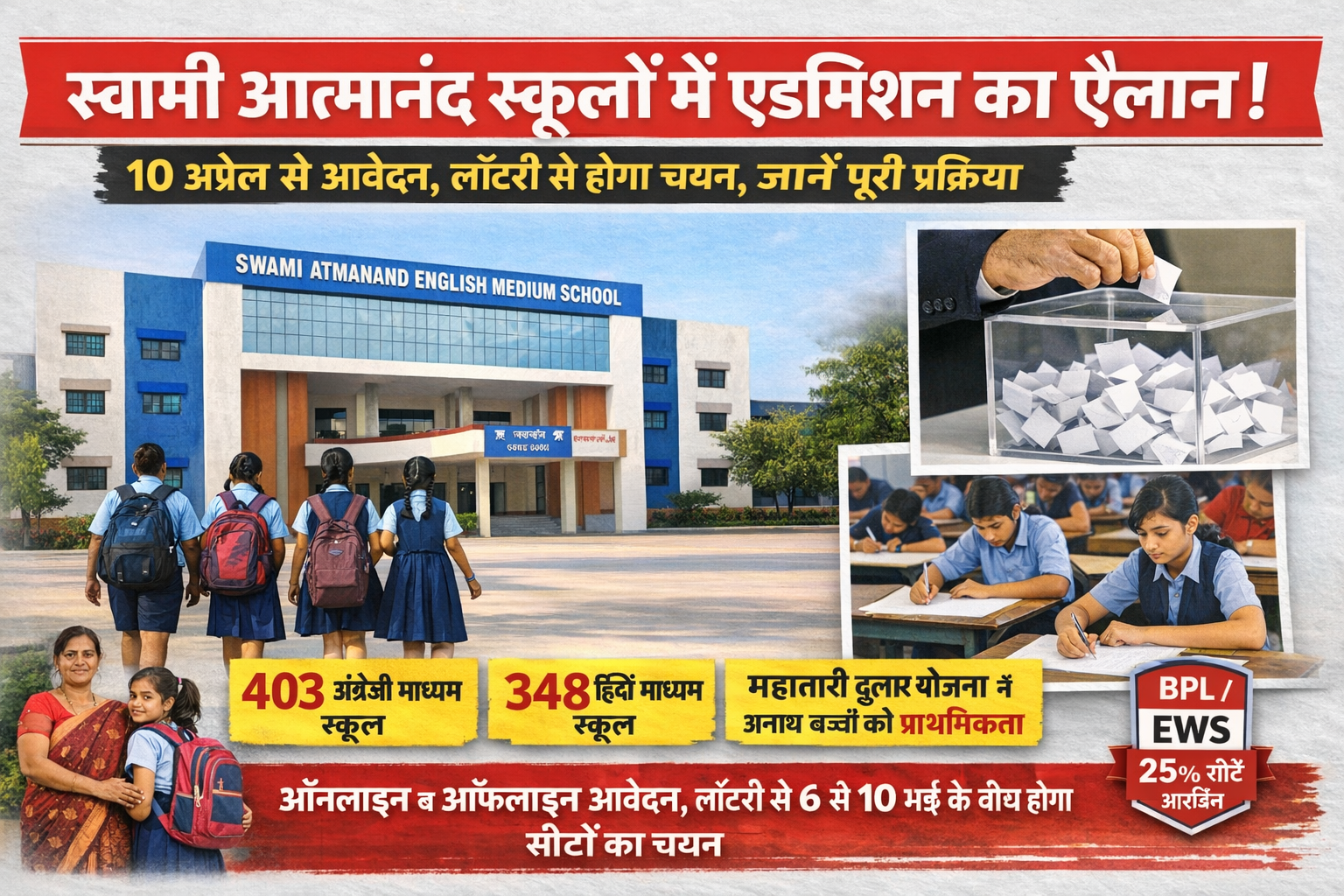 स्वामी आत्मानंद स्कूलों में प्रवेश प्रक्रिया शुरू: 10 अप्रैल से आवेदन, लॉटरी से होगा चयन