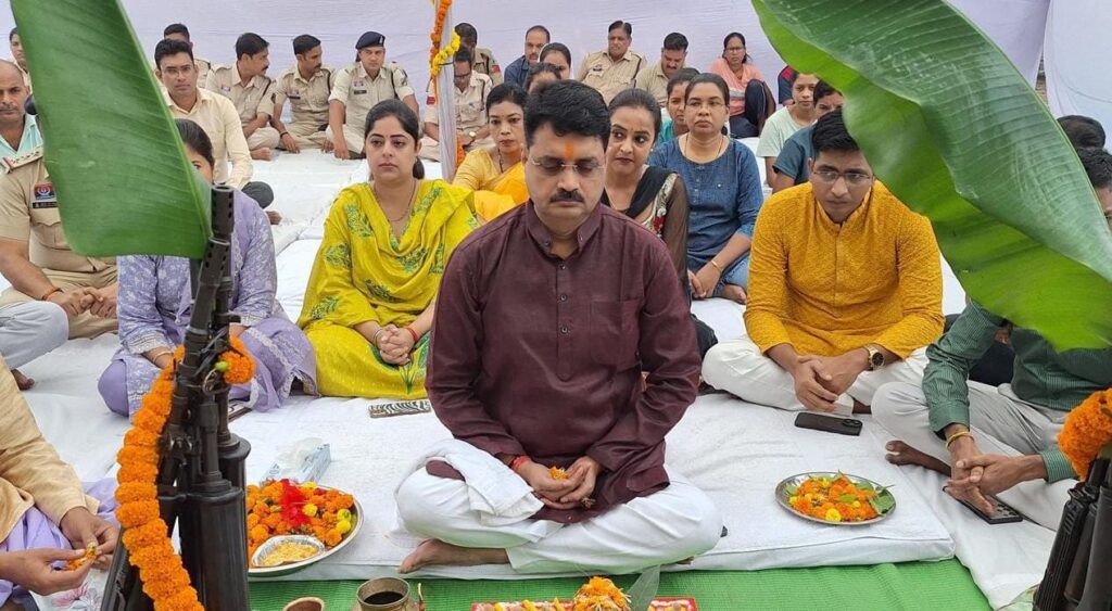 पुलिस विभाग द्वारा शस्त्र पूजा में वरिष्ठ पुलिस अधीक्षक रजनेश सिंह आईपीए के साथ अतिरिक्त पुलिस अधीक्षक शहर राजेंद्र जयसवाल, अतिरिक्त पुलिस अधीक्षक ग्रामीण अर्चना झा, अतिरिक्त पुलिस अधीक्षक accu अनुज कुमार, अतिरिक्त पुलिस अधीक्षक यातायात रामगोपाल करियारे, अतिरिक्त पुलिस अधीक्षक iucaw गरिमा द्वैविदी, डीएसपी hq रश्मित कौर चावला, सीएसपी कोतवाली आईपीएस गगन कुमार, सीएसपी सिविल लाइन निमितेश सिंह, डीएसपी यातायात शिव चरण सिंह परिहार, डीएसपी लाल चंद मोहले, डीएसपी अनिता मिंज, डीएसपी भारती मरकाम, रक्षित निरीक्षक भूपेन्द्र गुप्ता और थाना चौकी प्रभारी तथा पुलिस के साथ होम गार्ड, सशस्त्र बल के अधिकारी कर्मचारी मौजूद रहे सभी थाना चौकी में भी सभी अधिकारी कर्मचारी द्वारा माँ दुर्गा की पूजा किए।