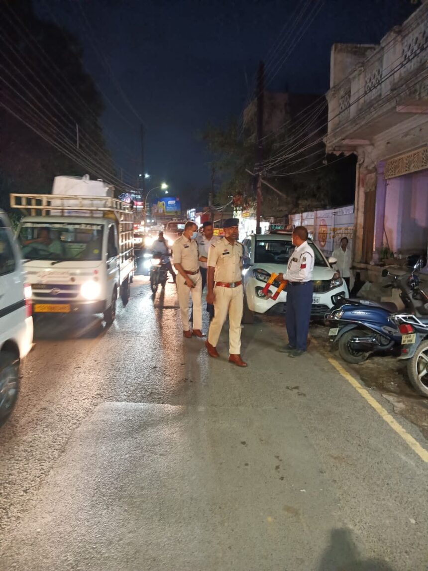 इसी कड़ी में आज देवकीनंदन चौक से शनिचरी और अन्य शहर के कई क्षेत्रों में लगातार पैदल पेट्रोलियम कर नो पार्किंग में खड़ी वाहनों पर सघन कार्यवाही की गई। कार्यवाही में रामगोपाल करियारे अतिरिक्त पुलिस अधीक्षक यातायात, डीएसपी शिव चरण सिंह परिहार, टैंगो सईद अख्तर सर, टेंगों नवीन देवांगन, ASI धनेश साहू, ASI अभय खलखो एवं स्टाफ प्र. आर. राजेंद्र मिश्रा, आर. डी साहू आर. राकेश सिंह, संदीप अनंत, शेखर सिंह एवं स्टाफ शामिल थे।