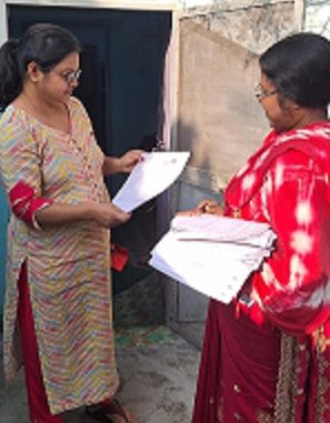 घर-घर पहुँच कर गणना पत्रक वितरित कर रही हैं बीएलओ मालती सारथी