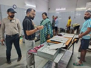 बिलासपुर,15अक्टूबर (वेदांत समाचार) । दीपावली त्यौहार को दृष्टिगत रखते हुए नकली खोवा तथा गुणवत्ताहीन मिठाई की बिक्री की संभावना हो सकती है, जिससे लोगो के स्वास्थ्य पर बुरा असर पड़ सकता है। कलेक्टर बिलासपुर और नियंत्रक खाद्य एवं औषधि प्रशासन के निर्देशानुसार बिलासपुर जिले के समस्त मिठाई दुकानों का सघन निरीक्षण किया जा रहा है। मिलावट की आशंका के मद्देनजर खाद्य सुरक्षा अधिकारी अंकित गुप्ता एवं कु० अविषा मरावी ने खाद्य एवं औषधि प्रशासन टीम के साथ मेसर्स मौसाजी स्वीट्स, गोल बाजार बिलासपुर से काजू कतली एवं बुन्दी लड्डू का नमूना मेसर्स बंगाल स्वीट्स राजीव गांधी चौक से बेसन लड्डू का नमूना संकलित कर परीक्षण व विश्लेषण हेतु राज्य खाद्य परीक्षण प्रयोगशाला रायपुर भेजा गया है। साथ ही मेसर्स बीकानेर स्वीट्स मदिर चौक का निरीक्षण कर आवश्यक निर्देश दिए गए है।