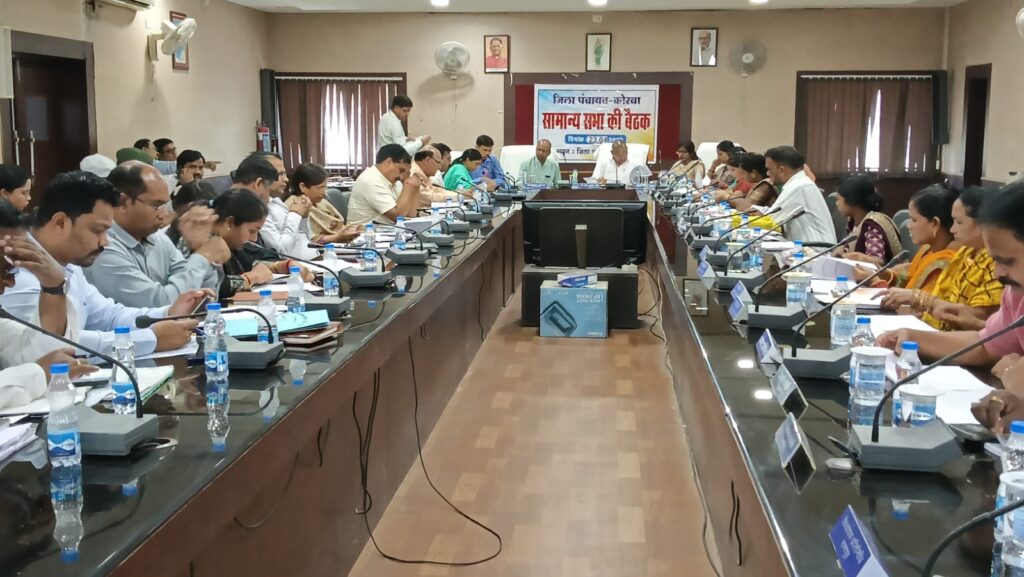 कोरबा, 23अप्रैल 2025 – जिला पंचायत के सभाकक्ष में बुधवार को सामान्य सभा की बैठक आयोजित की गई। बैठक की अध्यक्षता जिला पंचायत अध्यक्ष पवन कुमार सिंह ने की। पाली तानाखार विधायक तुलेश्वर सिंह मरकाम और सीईओ जिला पंचायत दिनेश कुमार नाग की उपस्थिति में विभिन्न विभागों के कार्यों की समीक्षा की गई।