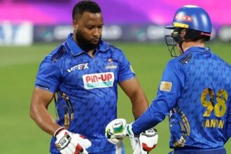 नई दिल्ली,20नवंबर :भारत के पूर्व क्रिकेटर हरभजन सिंह और पाकिस्तान के तेज गेंदबाज शाहनवाज दहानी एक-दूसरे से हाथ मिलाते दिखे हैं. इतना ही नहीं दोनों ने एक-दूसरे के खिलाफ मैच भी खेला है. भज्जी के पाकिस्तानी क्रिकेटर के साथ हाथ मिलाने का ये नजारा अबू धाबी T20 में देखने को मिला, जहां 19 नवंबर को नॉर्दन वॉरियर्स का मुकाबला अस्पिन स्टालियंस से था. मैच में हरभजन सिंह ना सिर्फ अस्पिन स्टालियंस के खिलाड़ी थे बल्कि उसके कप्तान भी थे. वहीं शाहनवाज दहानी, नॉर्दन वॉरियर्स का हिस्सा थे.