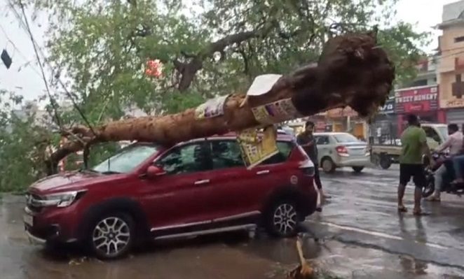 कोरबा,01जून 2025(वेदांत समाचार) । कोरबा जिले में शनिवार दोपहर को मौसम ने अचानक करवट ली। आसमान में काले बादल छा गए। बिजली की चमक, गडग़ड़ाहट और तेज हवाओं के साथ हुई बारिश ने शहर में जन-जीवन अस्त-व्यस्त कर दिया। बारिश के साथ ही शहर में कई समस्याएं खड़ी हो गईं। सडक़ें पानी में डूब गईं, नालियों में पानी भर गया। निचले इलाकों की दुकानों और घरों में पानी घुस गया।इसी कड़ी में निहारिका क्षेत्र अंतर्गत संचालित रवि डेयरी के सामने एक बड़ा पेड़ यहां खड़ी दो कार के ऊपर गिर पड़ा। इसकी वजह से बिजली का खंभा भी टेढ़ा हो गया और सडक़ के इस पार से उस पार खंबे में खींचे गए विद्युत केवल तार भी क्षतिग्रस्त होकर सडक़ पर गिर पड़े। गनीमत रही कि इसमें करंट का प्रवाह नहीं हो रहा था अन्यथा बड़ा हादसा हो सकता था। पेड़ गिरने की वजह से सडक़ के दोनों और वाहनों की लंबी कतार लग गई और सडक़ जाम हो गया, नगर निगम और विद्युत विभाग की टीम में मौके पर पहुंचकर पेड़ को हटाते हुए व्यवस्था दुरुस्त कराया। हादसे का सुखद पहलु रहा हैं की कोई जनहानि नहीं हुई।