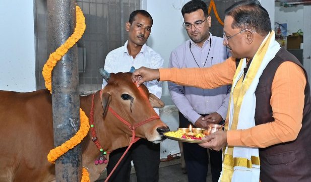 रायपुर, 22 अक्टूबर (वेदांत समाचार) । मुख्यमंत्री विष्णु देव साय ने आज मुख्यमंत्री निवास रायपुर में स्थित गौशाला में गोवर्धन पूजा के अवसर पर गौमाता की पूजा-अर्चना की और गौ माता को खिचड़ी खिलाकर गोसेवा की परंपरा निभाई। उन्होंने इस अवसर पर प्रदेशवासियों की सुख-समृद्धि, शांति और खुशहाली की मंगलकामना की।