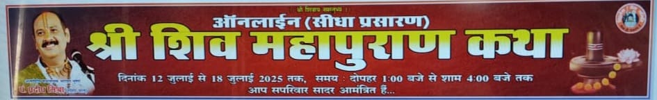 डॉ.नागेन्द्र नारायण शर्मा ने सभी शिव भक्तों, आमजनों सहित, अंचलवासीयों से अधिकसे अधिक संख्या मे उपस्थित होकर अंतर्राष्ट्रीय कथा वाचक भागवत भूषण पंडित प्रदीप मिश्रा जी की शिव महापुराण कथा का पतंजलि चिकित्सालय श्री शिव औषधालय निहारीका महानदी काम्प्लेक्स प्रांगण में निर्मित पंडाल में बैठकर कथा श्रवण कर पुण्य लाभ प्राप्त करने हेतु अपील की है।