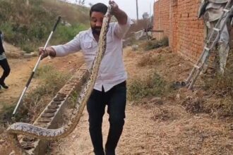 15 फीट ऊंचे छप्पर में बैठे अजगर का खतरनाक रेस्क्यू, सुरक्षित जंगल में छोड़ा गया…
