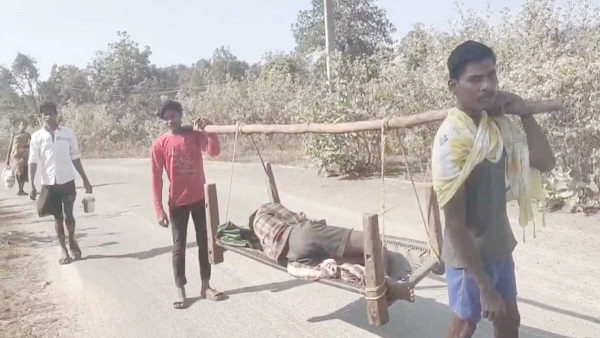 जानकारी के मुताबिक, जहर का सेवन करने से गंभीर हालत में एक ग्रामीण को कोंडासावली से जिला अस्पताल रेफर किया गया। इलाके में पक्की सड़क है, उपस्वास्थ्य केंद्र भी है, लेकिन आपात स्थिति में एम्बुलेंस नहीं मिली। मजबूरी में परिजन मरीज को खाट पर लादकर सड़क के सहारे अस्पताल की ओर निकले।