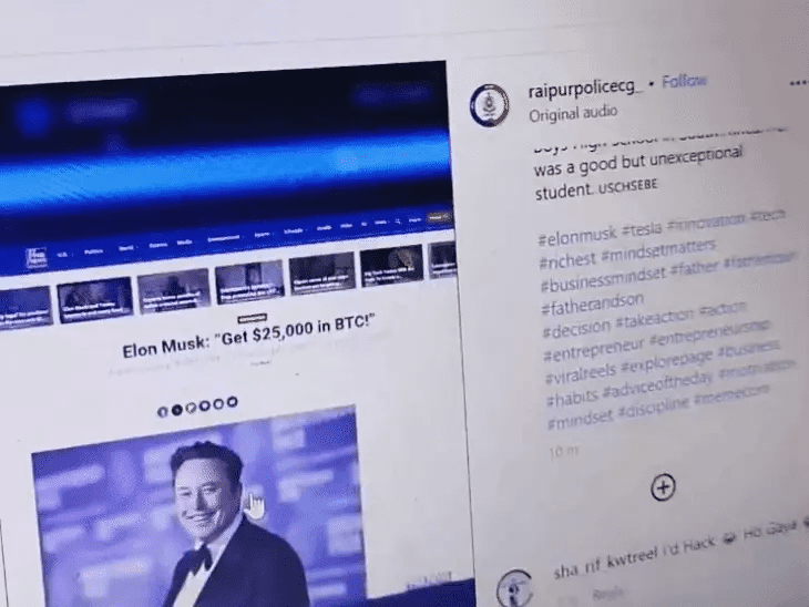 रायपुर पुलिस की इंस्टाग्राम पेज पर साइबर अटैक हुआ है। हैकर ने पुलिस की इंस्टाग्राम आईडी को हैककर अश्लील पोस्ट कर दिया। पोस्ट में इलॉन मस्क और एक लड़की को भी दिखाया गया है। रायपुर पुलिस ने इंस्टाग्राम आईडी को रिकवर कर लिया है।