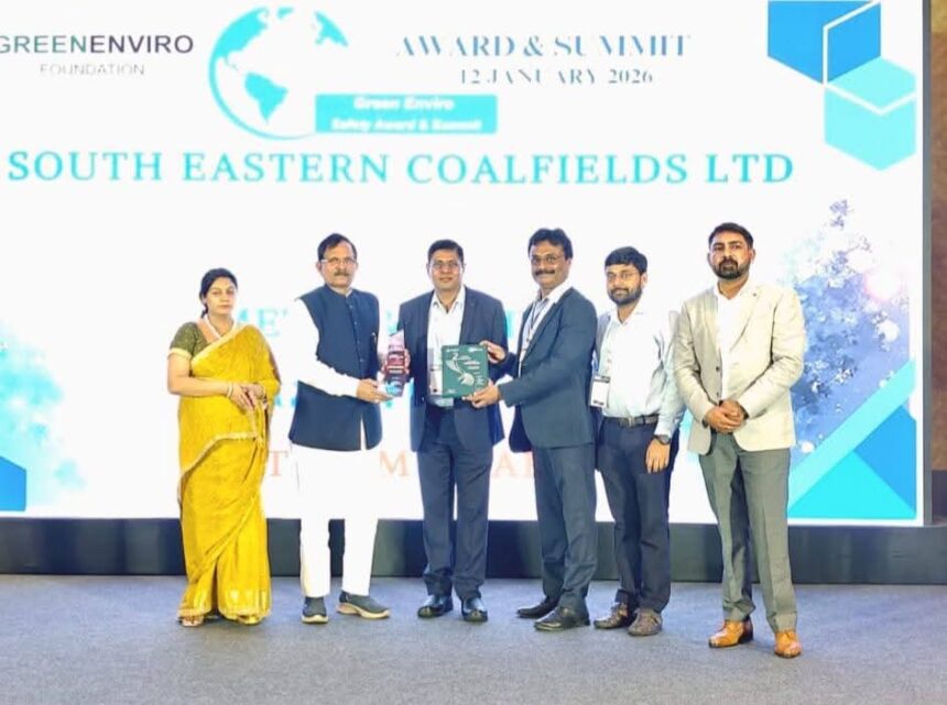 South Eastern Coalfields Limited (SECL) has been conferred with the Platinum Award in the Environmental, Social & Governance (ESG) Initiatives category for the Metal & Mining Sector at the 2nd Annual Green Enviro Award & Summit 2026, organised by the GreenEnviro Foundation. The prestigious recognition highlights SECL’s steadfast commitment towards sustainable mining practices, environmental stewardship, and responsible corporate governance.
