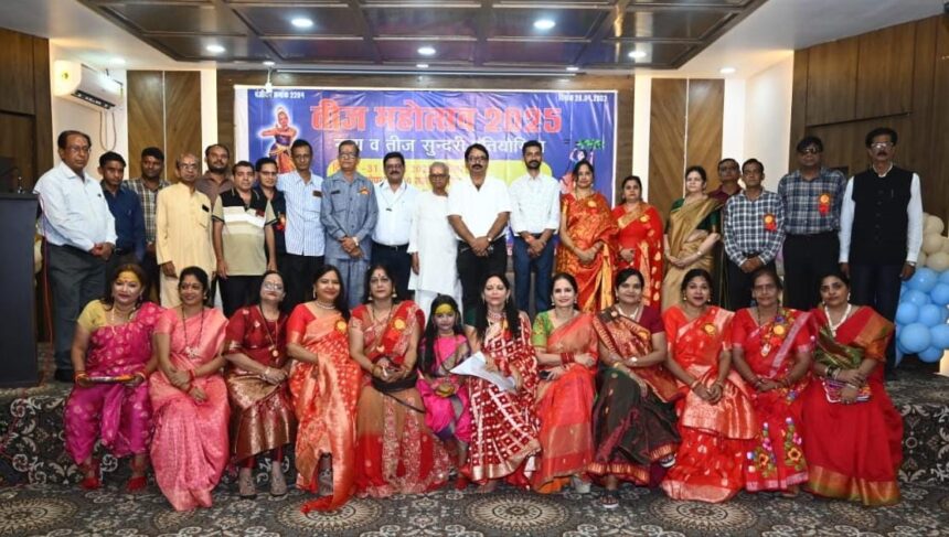 रायपुर, 01 सितंबर (वेदांत समाचार)। वर्ल्ड ब्राह्मण फेडरेशन छ.ग. एवं सर्व युवा ब्राह्मण परिषद छ.ग. द्वारा विगत वर्षों की भाँति प्रदेश की विप्र महिलाओं, युवतियों को पूर्णतः सांस्कृतिक मंच प्रदान करने के लिए “तीज महोत्सव” का आयोजन अग्रवाल भवन, पुरानी बस्ती में किया गया. प्रतिभागियों ने समूह, एकल नृत्य, युगल नृत्य तीज सुंदरी की प्रस्तुति दी. कार्यक्रम की मुख्य अतिथि महापौर श्रीमती मीनल चौबे एवं विशेष अतिथि राज्य बाल संरक्षण आयोग अध्यक्ष श्रीमती वर्णिका शर्मा रहीं. अतिथियों ने माँ सरस्वती के चित्र पर माल्यार्पण, दीप प्रज्जवलन, वंदना कर कार्यक्रम का शुभारम्भ किया. पदाधिकारियों द्वारा अतिथियों का पुष्प गुच्छ एवं स्मृति चिन्ह प्रदाय कर स्वागत किया गया.