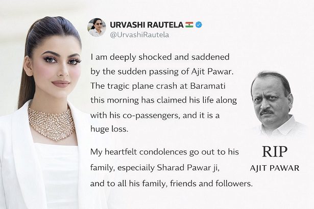एक्स पर उर्वशी रौतेला ने लिखा: “अजित पवार के अचानक निधन से मैं बेहद स्तब्ध और दुखी हूं। आज सुबह बारामती में हुए इस दुखद विमान हादसे ने उनकी जान ले ली और एक बड़ा शून्य छोड़ दिया है। उनके परिवार, प्रियजनों और इस अपूरणीय क्षति से प्रभावित सभी लोगों के प्रति मेरी हार्दिक संवेदनाएं।” उर्वशी रौतेला की यह संवेदना इस बात को रेखांकित करती है कि अजित पवार का अचानक हुआ निधन केवल एक राजनीतिक घटना नहीं, बल्कि एक मानवीय क्षति भी है जो सुर्खियों के पीछे छिपे गहरे दर्द की याद दिलाता है।