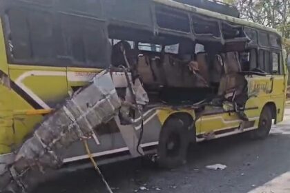 कोरबा-पसान मार्ग पर बड़ा हादसा टला, ट्रेलर से रगड़कर बस का आधा हिस्सा क्षतिग्रस्त, तीन यात्री घायल